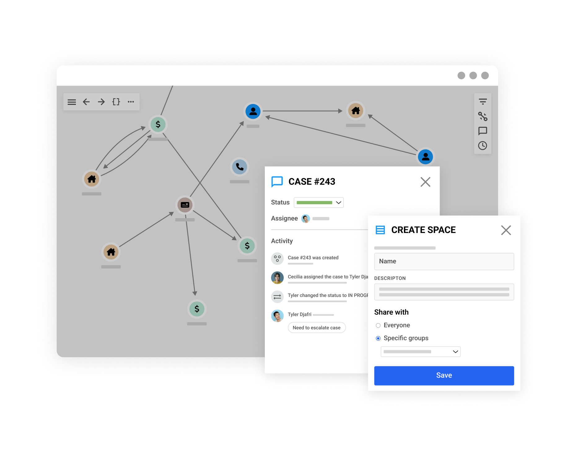 Bad actors often work together to fly under the radar, so why shouldn’t you? With Linkurious Enterprise Watchtower, collaborating across your organization is a breeze. No matter how small or large your investigation may be, keeping up with mission-critical cases requires that your investigation software be built for teams. Ours is.